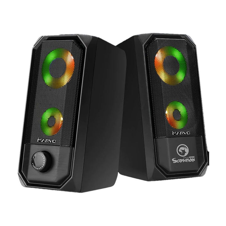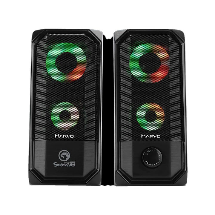 Upgrade your gaming setup with the Spekar Marvo SG265 RGB Gaming SP126, designed to deliver crystal-clear stereo sound and immersive RGB lighting effects. Perfect for gamers and music enthusiasts alike, this speaker combines power, precision, and vibrant style.